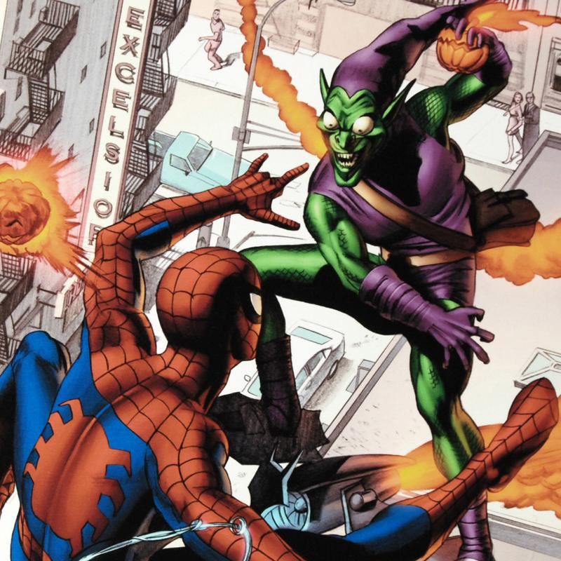 A piece of comic book history, this limited edition, from original art by Mike Mayhew, depicts a sky battle scene between the Green Goblin and Spider-Man. Mike Mayhew has been working in comics since 1992. He revolutionized interior comic art with full pencil rendering. Mike took his cover skills to Marvel where he dazzled viewers with his depictions of Mystique, Elektra and She-Hulk. "Dark Reign: The Goblin Legacy One-Shot" is a limited edition giclee on canvas by Mike Mayhew presented by Marvel Comics! This piece comes gallery wrapped. Numbered, and includes Certificate of Authenticity! Measures approx. 18" x 27" (image); approx. 1.5" (depth).