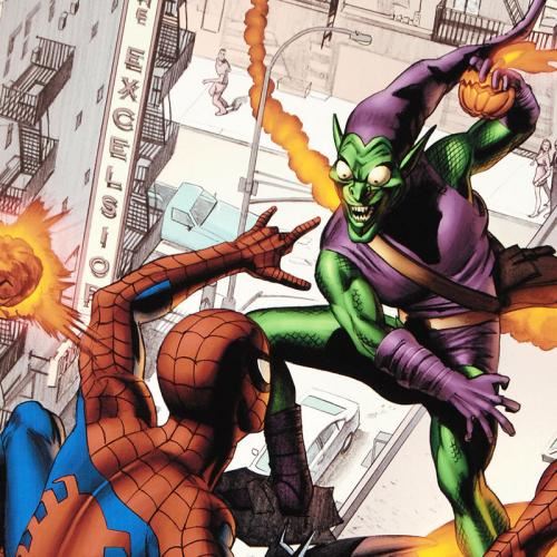 A piece of comic book history, this limited edition, from original art by Mike Mayhew, depicts a sky battle scene between the Green Goblin and Spider-Man. Mike Mayhew has been working in comics since 1992, revolutionizing interior comic art with full pencil rendering. Mike took his cover skills to Marvel where he dazzled viewers with his depictions of Mystique, Elektra and She-Hulk. "Dark Reign: The Goblin Legacy One-Shot" is an extremely limited edition giclee on canvas by Mike Mayhew presented by Marvel Comics and hand signed by the great Stan Lee - numbered out of only 10! This piece is custom framed and ready to hang. Includes Certificate of Authenticity! Measure approx. 25" x 34" (with frame), 18" x 27" (image).