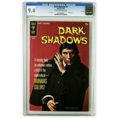 <B>Dark Shadows #2 File Copy (Gold Key, 1969) CGC NM 9.4 Off-white to white pages.</B></I> Photo cover. Joe Certa art. Overstreet 2006 NM- 9.2 value = $130. CGC census 3/06: 4 in 9.4, 1 higher. <I>From the Random House Archives.</B></I>