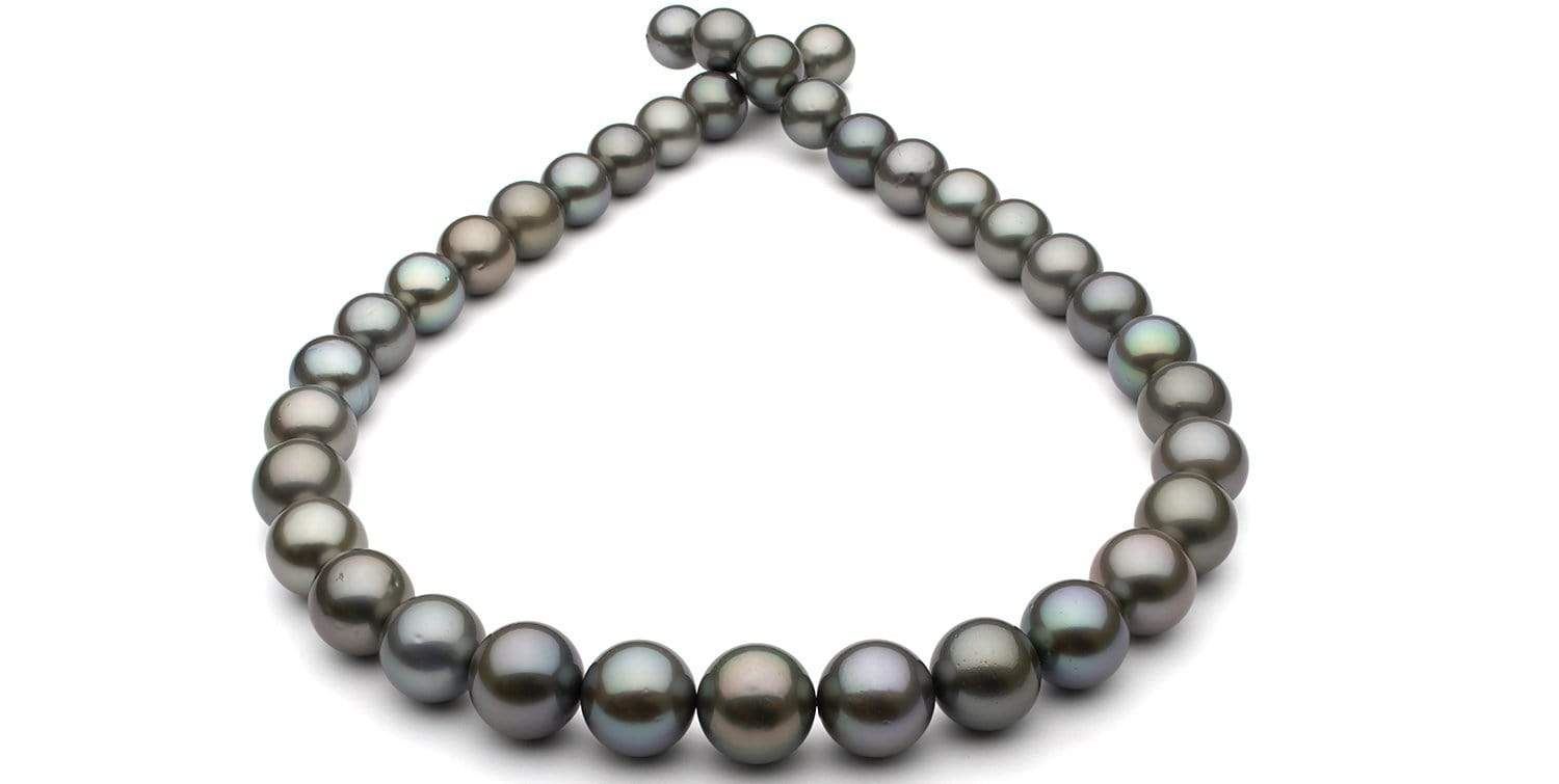 Dark Steel and Subtle Peacock Round Tahitian Pearl Necklace, 18-Inch, 9.9-12.3mm, AA+ Quality