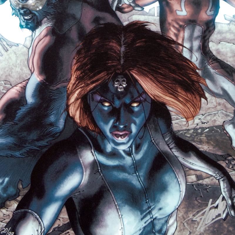 A piece of comic book history, this limited edition, from original art by Simone Bianchi, depicts Mystique, Dark Beast, Omega, and Angel. Known for his use of ink wash in his work, Simone Bianchi is an Italian comic book artist famous for his X-Men Unlimited artwork. "Dark X-Men #1" is a limited edition numbered giclee on canvas by Simone Bianchi presented by Marvel Comics, hand signed by the great Stan Lee! Includes Certificate of Authenticity! Measures approx. 18" x 27" (image).