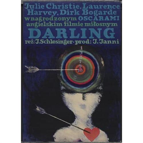 <B>Darling (Embassy, 1965).</B></I> Polish One Sheet (23" X 32.5"). Drama. Starring Laurence Harvey, Dirk Bogarde, Julie Christie, Jose Luis De Villalonga. Directed by John Schlesinger. Fantastic grade for one of legendary Polish artist Liliana Baczewska's scarcer posters. This was Christie's Best Actress Oscar role. Film won two more Oscars. Incredible bright color mix. Rolled, Near Mint.<BR><BR><b>Shipping:</b> Rolled Material (<a target="_blank" href="http://www.heritageauctions.com/common/shipping.php">view shipping information</a>)