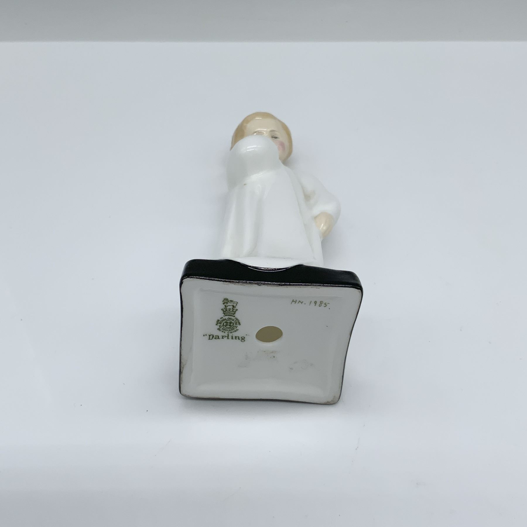 Handmade and hand decorated glossy figure from the Child Study Series. During a visit to the Royal Doulton factory, Queen Mary picked this piece out and exclaimed: Is he not a darling! Which is how he earned his name. Royal Doulton backstamp.