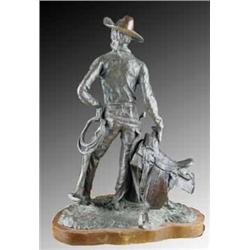Daro Flood (b.1954) (Arizona) Bronze. "Cowman." #4/30. 27" Tall signature inscribed. Est $4,000 - $5,000.