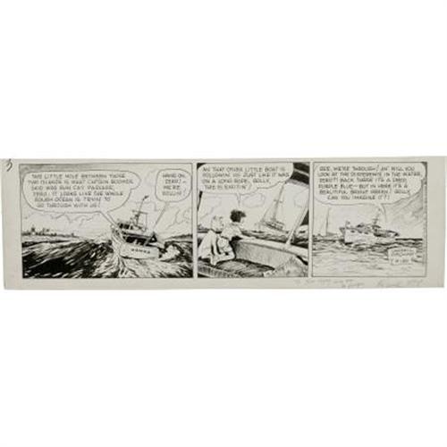 <B>Darrell McClure - Little Annie Rooney Daily Comic Strip Original Art, dated 5-30-56 (King Features Syndicate, 1956).</B></I> This <I>Little Annie Rooney </B></I>daily has an image area of 18" x 5", and the condition is Excellent. Signed by Darrell McClure at the bottom. <BR><BR><b>Shipping:</b> Flat Material, Small (<a target="_blank" href="http://www.heritageauctions.com/common/shipping.php">view shipping information</a>)