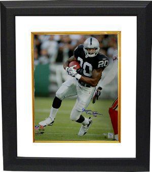 Darren McFadden was drafted fourth overall by the Oakland Raiders in the 2008 NFL Draft. He signed a contract worth $60 million with the Raiders, including $26 million in guaranteed money. Darren McFadden has hand autographed this Oakland Raiders 16x20 Photo. Custom White Mat and Premium Black Color Frame as shown. McFadden Hologram and Certificate of Authenticity from Athlon Sports.