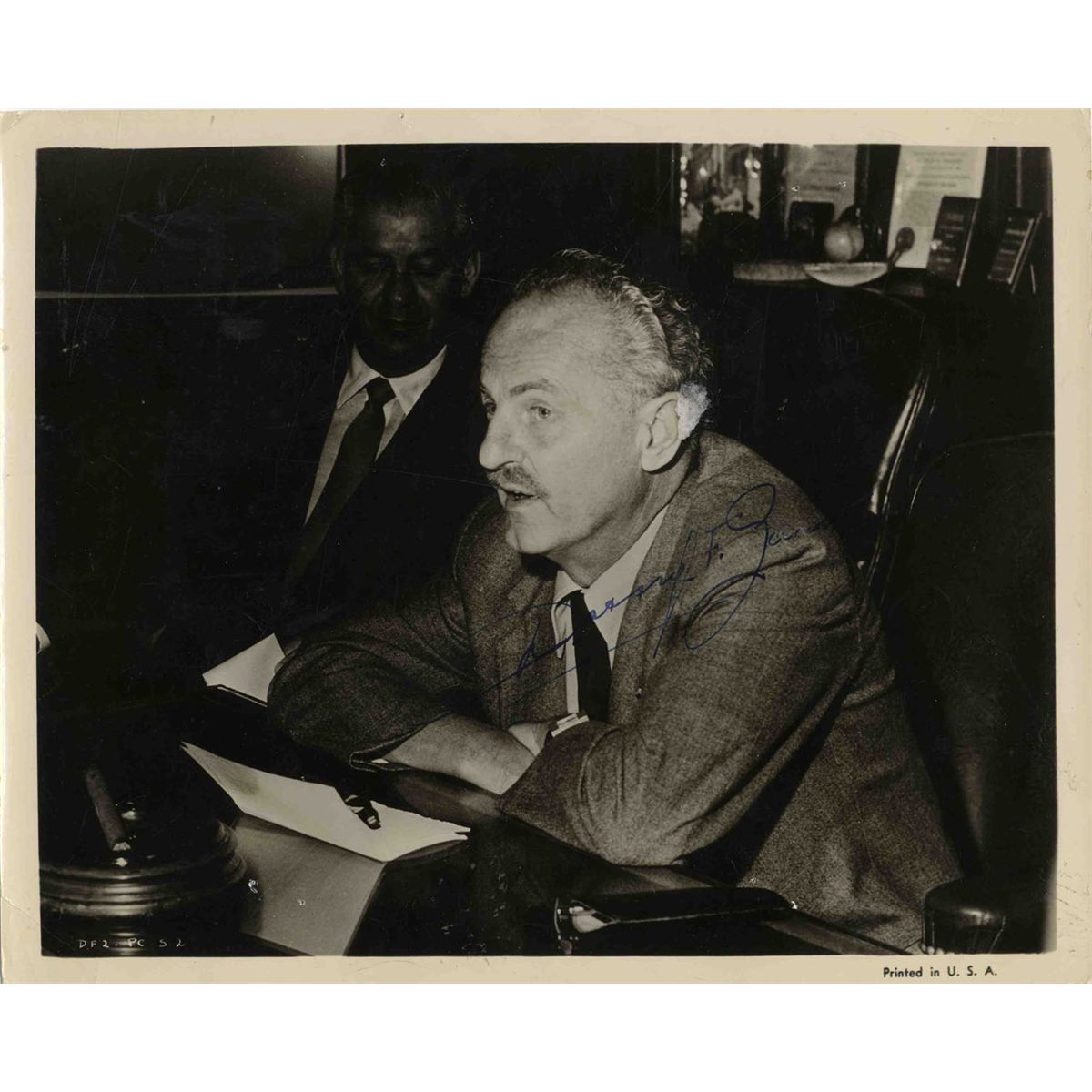 20th Century Fox Mogul Producer Darryl F. Zanuck Signed 10'' x 8'' Photo -- Signed in Bold Black Ink -- Slight Wrinkling Throughout, Writing and Magazine Stamps to Verso -- Good Condition