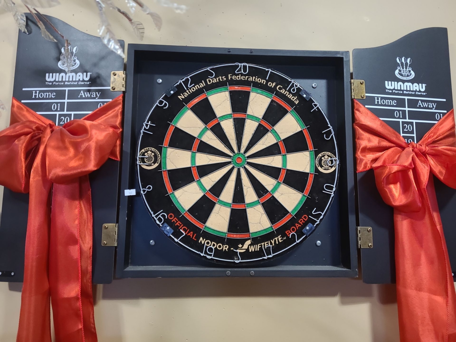 Dart Cabinet with Official Board and Box of Dart Accessories 23 L, 20 W