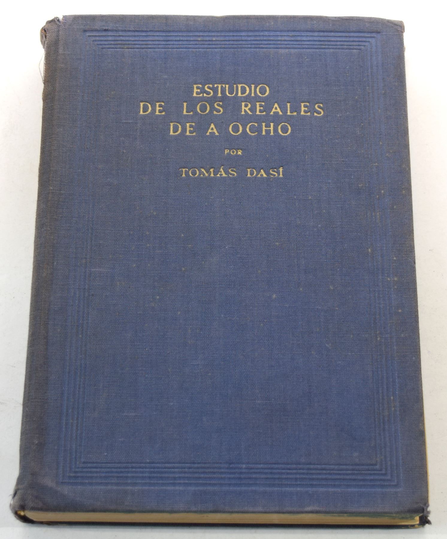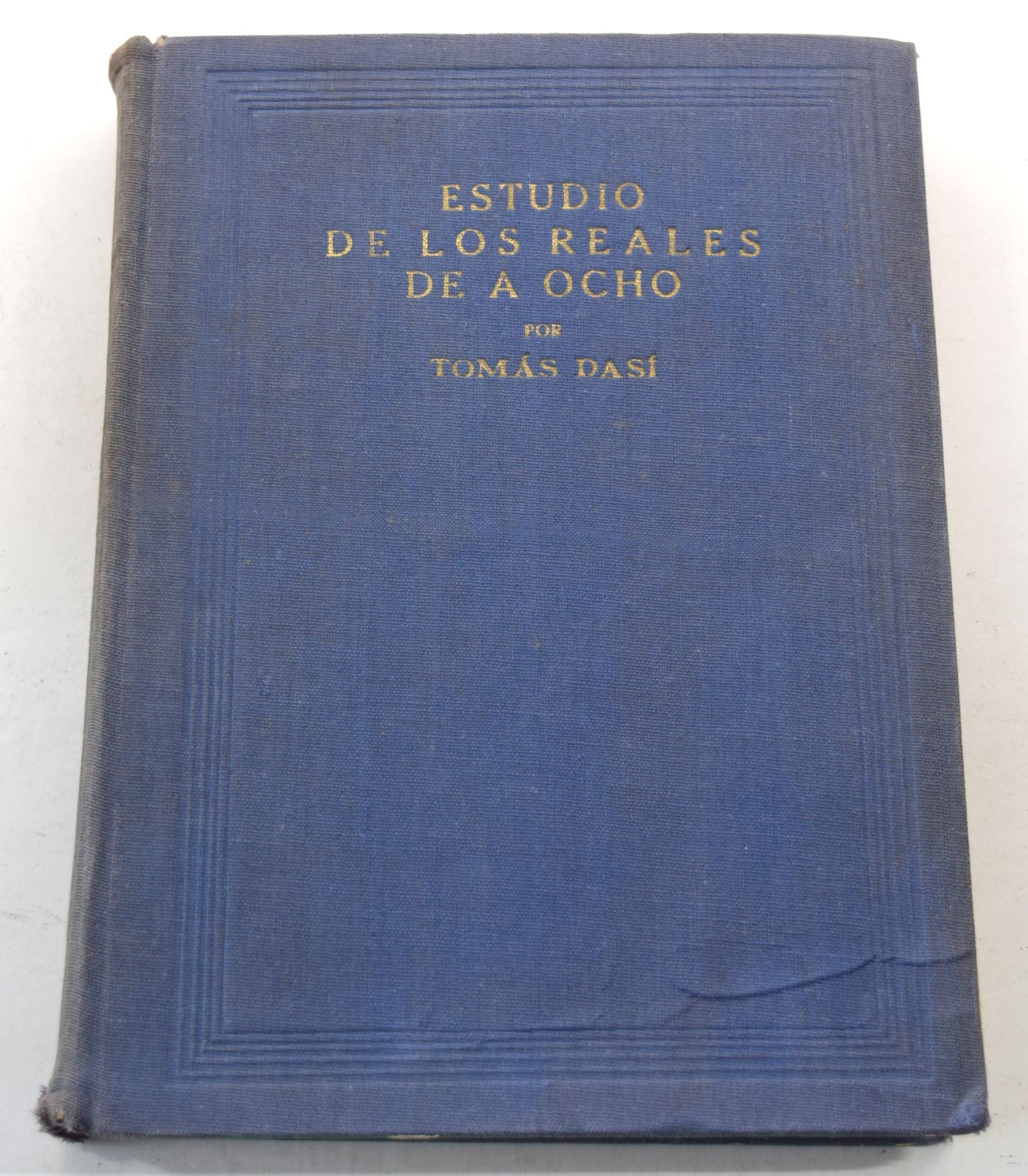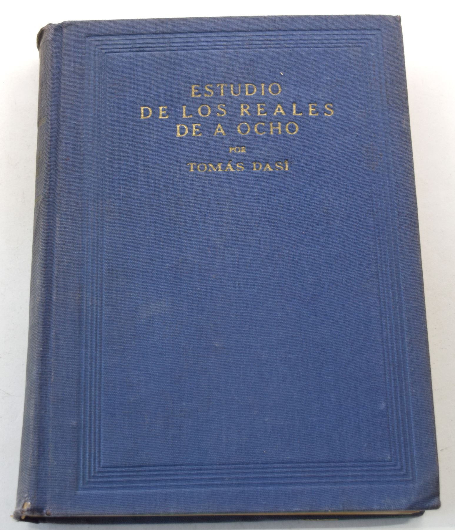 Dasí, Tomas. ESTUDIO DE LOS REALES DE A OCHO, VOLUMES 1 THROUGH 5. Tomas Dasí. 1950. 8vo, pages; Hardcover; Ex Kolbe June 9-15, 1984 sale lot 508; Five volumes, complete; original matching blue cloth, gilt. (I) limited edition 317 of 500 copies, 102 pages; (II) limited edition 323 of 500 copies, 232 pages; (III) limited edition 325 of 500 copies, 223 pages; (IV) limited edition 298 of 500 copies, 269 pages; (V) limited edition 318 of 500 copies, 159 pages; numerous text illustrations of coins. Some joints cracked, as often seen on these; ex libris stamps on endpapers. Very good. An indispensable reference to the 8 reales crowns of Spain and Colonial Spain. A notoriously fragile work, printed on inferior paper and poorly bound. Subject: Coinage - Spain