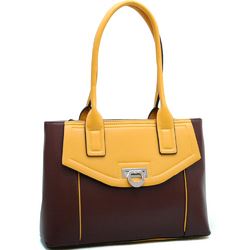 Dasein Classic Chic Two Tone Shoulder Bag - Coffee/Yellow