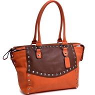 Dasein(R) Pyramid Studded Two Tone Winged Satchel-Brown/Orange