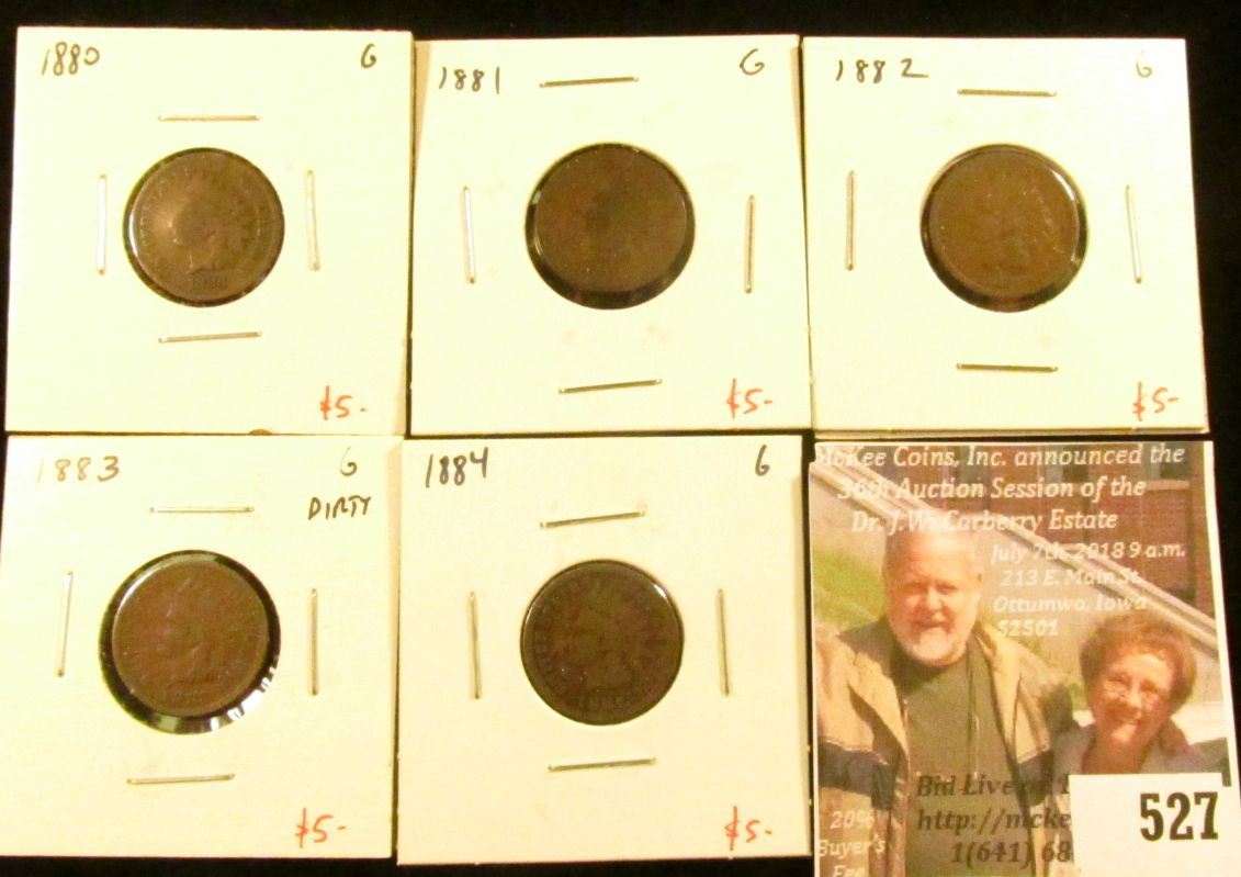Date run set of Indian Head Cents, 1880-1884 complete, 5 pieces, all G, group value $25