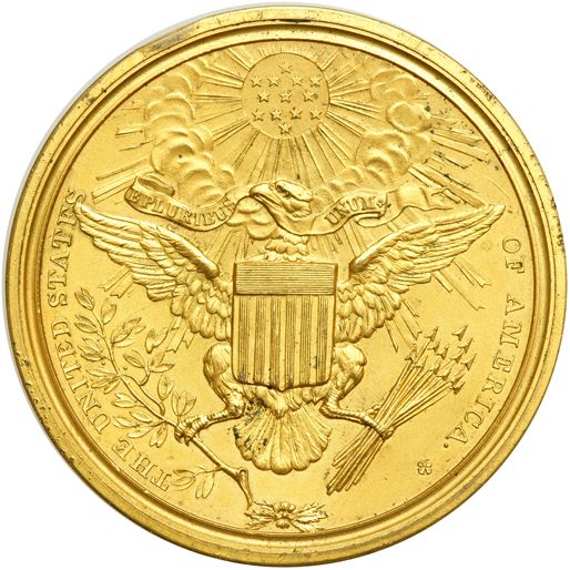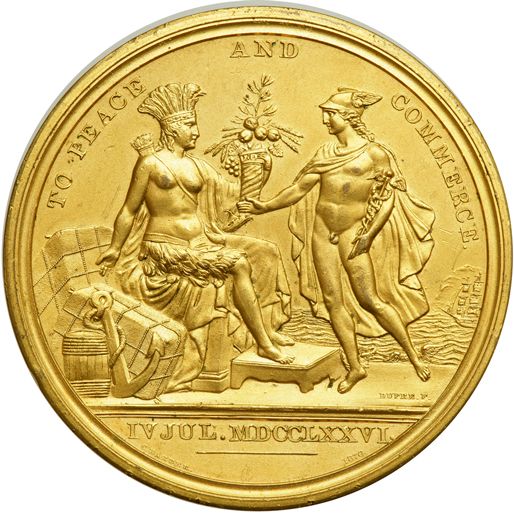 Dated July 4, 1776 To Peace and Commerce by F. Dupre. Gilt Medal issued 1876 by Charles Barber. EF