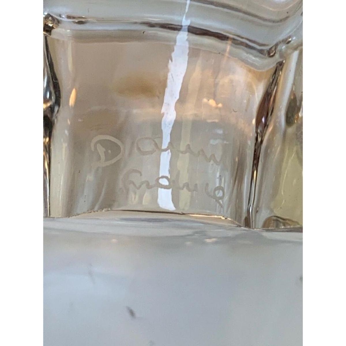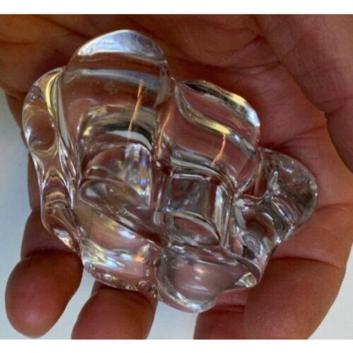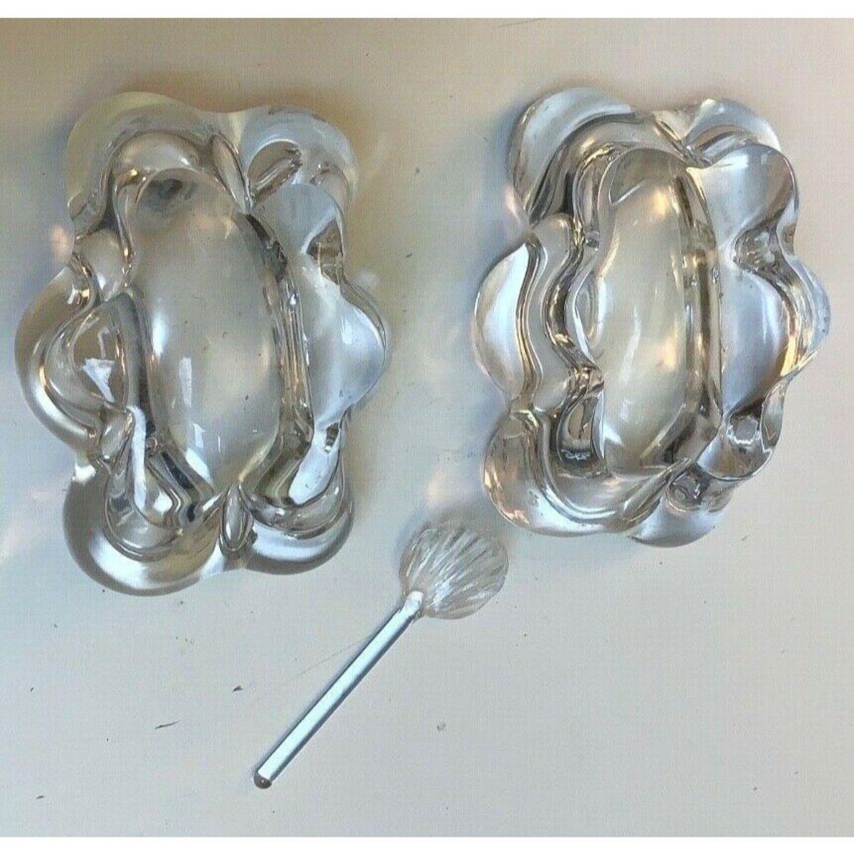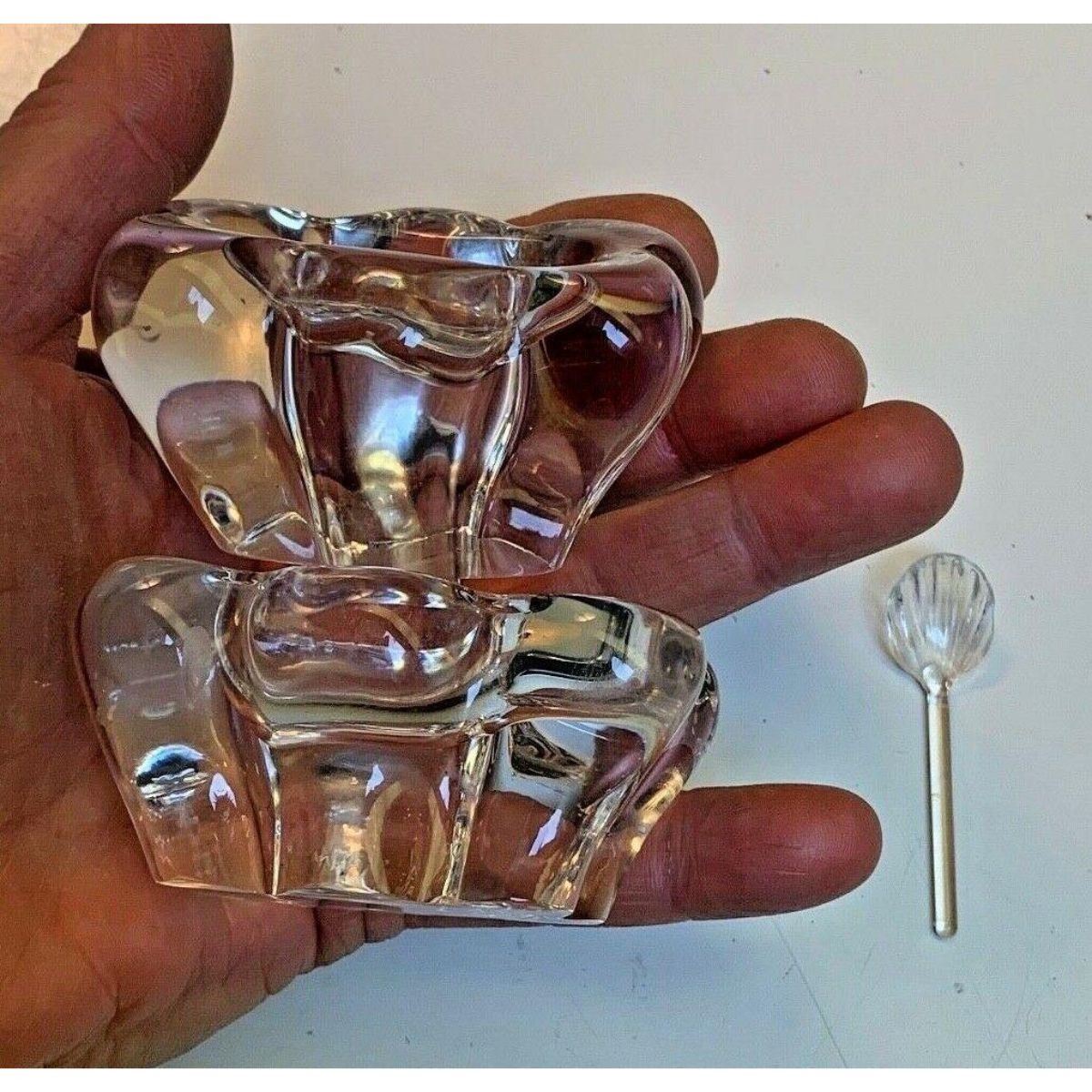 Pair of dainty but heavy signed Daum France floral form clear crystal salts, salt cellars with spoon. Â 2" L XÂ 2 3/4" W X 1 1/2" H.