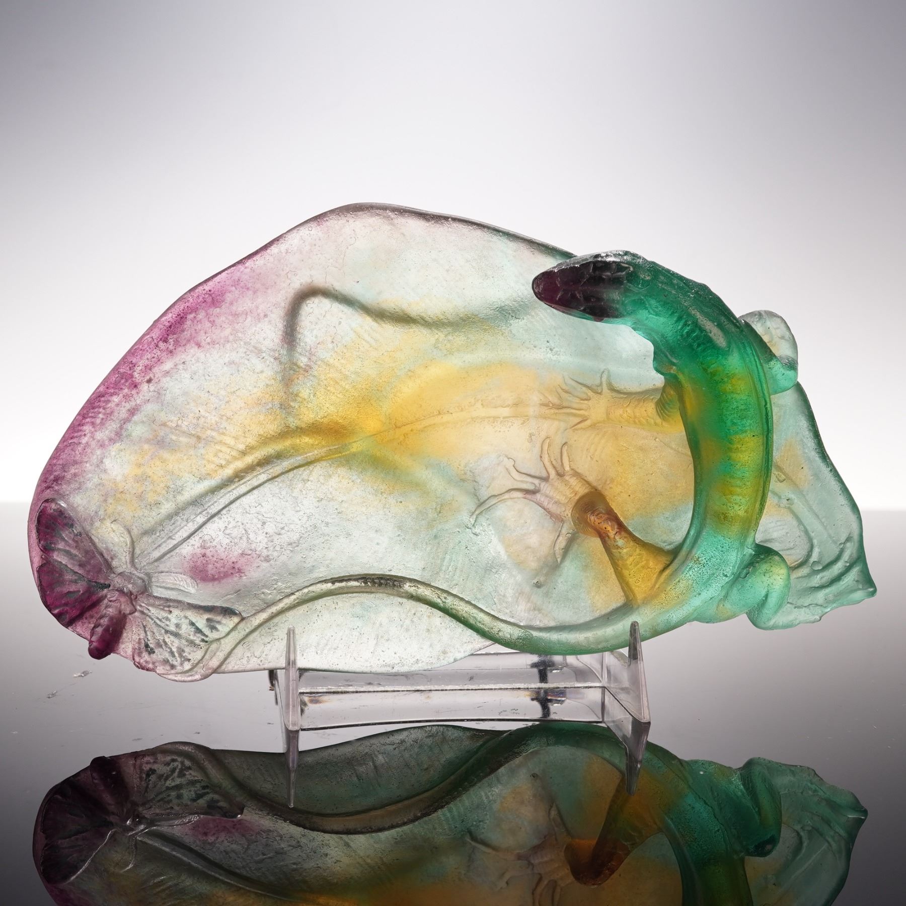 Daum Pate de Verre Tray, Lizard and Butterfly