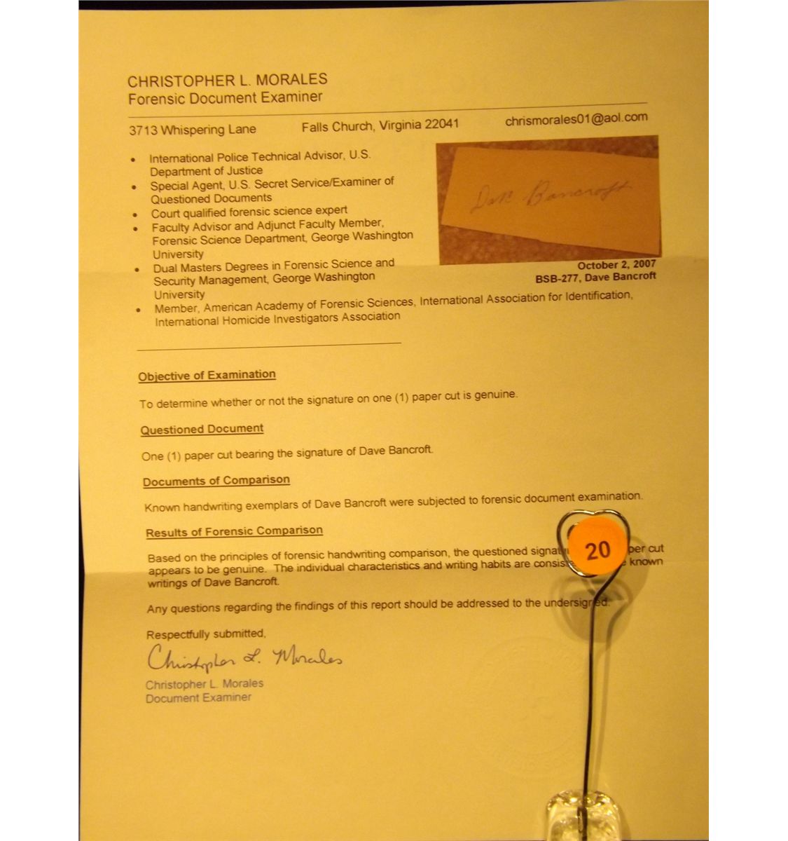 Dave Bancroft Die Cut Autograph. Appraised or estimated retail value $600. COA by Christopher Morales. All Sales Final. Please see terms and conditions of auction.