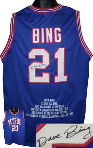 Dave Bing played 12 seasons in the National Basketball Association (NBA) as a guard for the Detroit Pistons (1966–75), Washington Bullets (1975-77), and Boston Celtics (1977–78). During his career, he averaged over 20 points and six assists per game and made seven NBA All-Star appearances, winning the game's Most Valuable Player award in 1976. After retiring, the Pistons celebrated his career accomplishments with the retirement of his #21 jersey. In addition, he was elected to the Naismith Memorial Basketball Hall of Fame and named one of the NBA's 50 Greatest Players of all-time. Dave Bing has hand signed this Detroit Pistons Blue Prostyle Jersey with Embroidered Stats. Certificate of Authenticity from Athlon Sports.