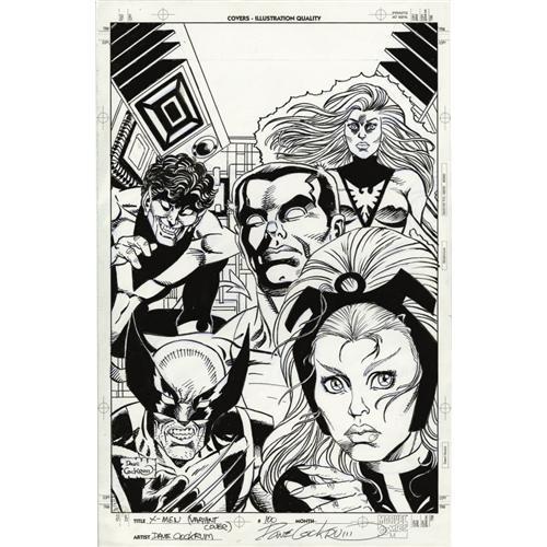<B>Dave Cockrum - X-Men #100 Variant Cover Original Art (Marvel, 2000).</B></I> The original cast of the Uncanny X-Men, Nightcrawler, Colossus, Wolverine, Storm, and Phoenix, face front on this dynamite cover illustration by the series' original artist, Dave Cockrum. The image area measures 10" x 15" and the condition is Excellent. <BR><BR><B>Important notice:</B> Heritage usually auctions material at the rate of 200-250 lots per hour. On some occasions eBay Live bid software or the Internet may not be able to keep up with the pace of the auction. We recommend placing a realistic absentee bid now as insurance to avoid disappointment. Occasionally the auctioneer may eliminate or reject an eBay Live bid, and the auctioneer may also reopen a lot after the close of the eBay live bidding (usually because we missed an audience bid), and may reject your bid even if it shows you as the winning bidder. By bidding via eBay Live, you agree that Heritage may award the lot to another bidder at its sole discretion under the circumstances described above or any other reasonable circumstances. Since eBay bids are not shown to us until we open the lot on the floor, we treat those bids just like floor bids. In most cases the floor responds before the eBay bid is presented to us, due to Internet lag time, so for consistency we have made it a policy that floor bids are always considered first over tie eBay live bids. Also please note that all Heritage lots purchased through eBay Live carry a 22.5% Buyer's Premium. Please make sure you read the Terms and Conditions before you bid. This lot is being auctioned in conjunction with a live floor auction by Heritage Auction Galleries. All final auction and invoice information will be supplied by Heritage Auction Galleries, and all other information should be considered preliminary. Lot:41001 <BR><BR><B>Winning Notification and Billing:</B> After the FINAL session in this auction is complete, Heritage will send e-mail and snail mail invoices. This process normally takes several days. All final auction and invoice information will be supplied by Heritage Auction Galleries, and all other information should be considered preliminary. <BR><BR>This auction will be conducted on a live auction floor and over the Internet through eBay Live. If you choose to place an absentee bid, please take a moment to <font color='#0000ff'><u><a href='http://pages.ebay.com/liveauctions/help/before/laabsentee.html'>learn how eBay Live absentee bidding works</a></u></font><font color='#000000'>