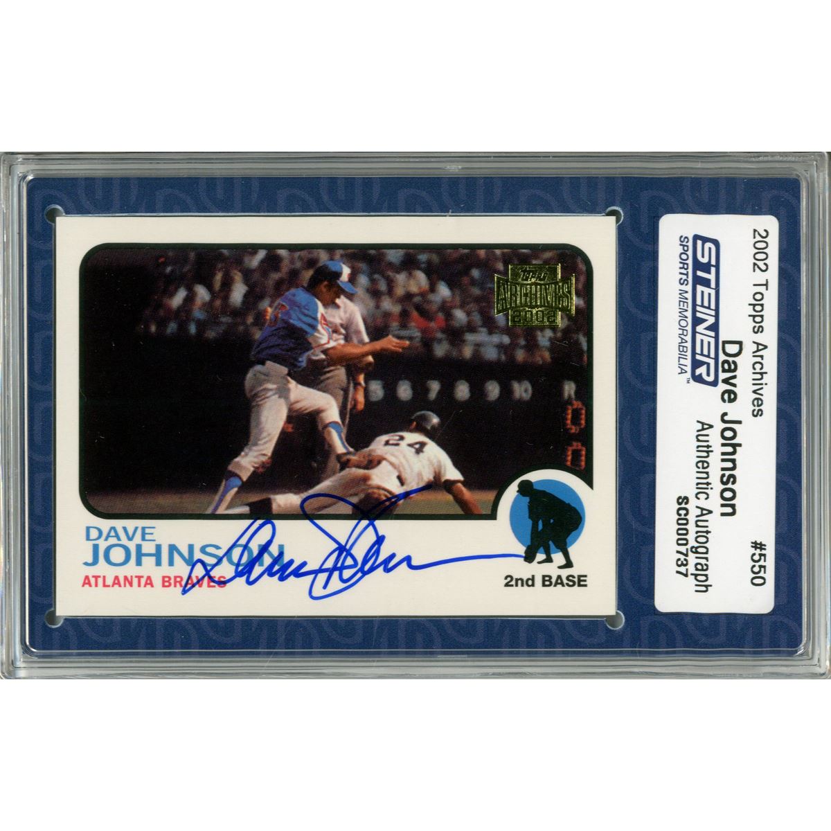Dave Johnson Signed 2002 Topps Card - Braves- Getting the out (Slabbed by Steiner)