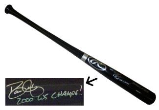 Justice made his major league debut in May 1989, playing for the last-place Braves. He earned the starting job after Braves fan favorite Dale Murphy was traded. Justice promptly went on an offensive tear during the second half of the 1990 season, finishing with 28 home runs, which helped him claim the National League's Rookie of the Year Award. In 1991, the upstart Braves surged to the top of their division and Justice was leading the National League in runs batted in when he was sidelined by a nagging back injury in June. He finished with 87 runs batted in despite the injury and played in his first World Series. Dave Justice has hand signed this Rawlings Pro Black Bat w/ 2000 WS Champs inscription. JSA Hologram and Certificate of Authenticity.