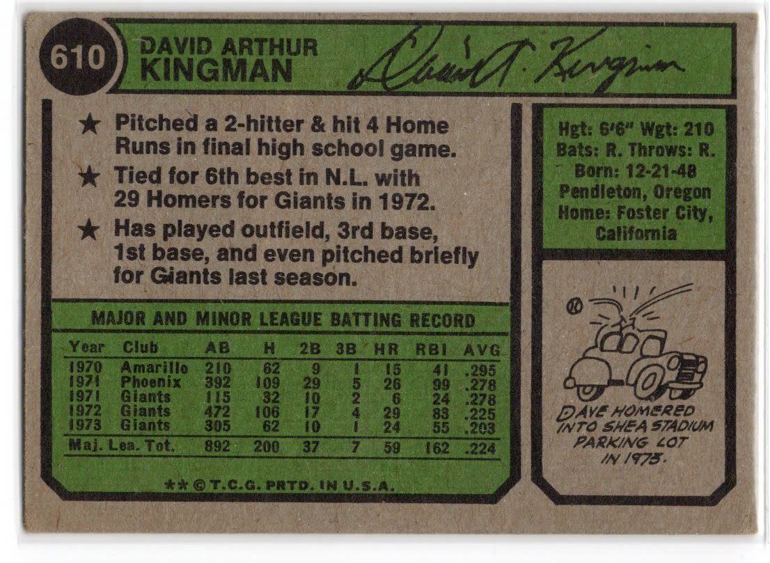 Dave Kingman 1974 Topps Card 610