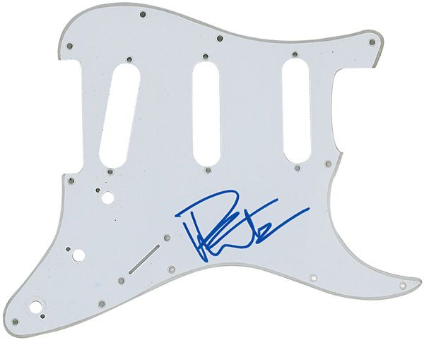 White pickguard for a standard size ‘strat’ signed in blue felt tip by Matthews. In fine condition, with some scattered light surface marks.