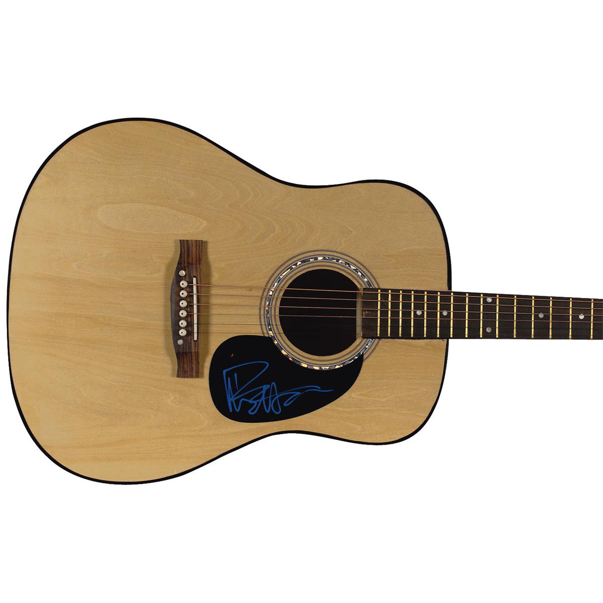Natural wood-finish six-string acoustic guitar, signed on the black pickguard in blue ink by Matthews. In fine condition. Oversized.