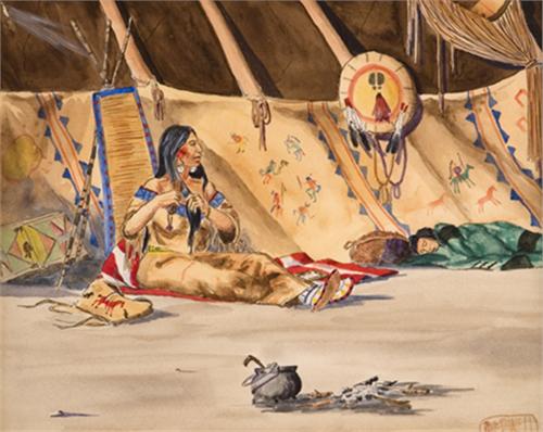 Dave Powell (b. 1954), CAA. Morning Ritual. 8" x 10" mixed medium on board. Signed lower right. (est $1,000-2,000)