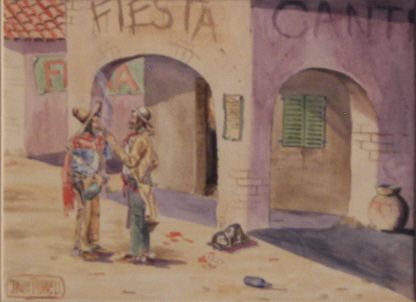 , Dave Powell , Watercolor , Fiesta Cantina , 6" x 8" , Signed Lower Left , (7640)