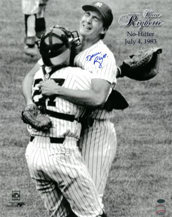 Dave Righetti began his career as a starting pitcher, but the Yankees converted him into a relief pitcher, using him as their closer, in 1984. He won the American League (AL) Rookie of the Year Award in 1981. As a starter, he threw a no-hitter on July 4, 1983. As a closer, he was twice named the AL Rolaids Relief Man of the Year and pitched in two MLB All-Star Games. He was the first player in history to both pitch a no-hitter and also lead the league in saves in his career. Dave Righetti has hand signed this New York Yankees 16x20 Photo from his No Hitter on July 4, 1983. Leaf Authentics Hologram and Certificate of Authenticity from Athlon Sports.