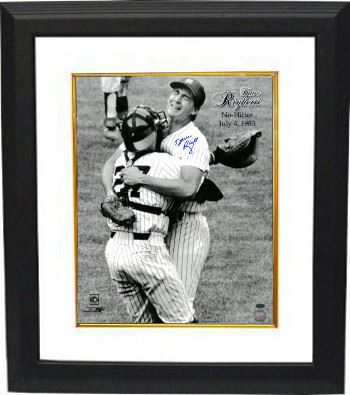 Dave Righetti began his career as a starting pitcher, but the Yankees converted him into a relief pitcher, using him as their closer, in 1984. He won the American League (AL) Rookie of the Year Award in 1981. As a starter, he threw a no-hitter on July 4, 1983. As a closer, he was twice named the AL Rolaids Relief Man of the Year and pitched in two MLB All-Star Games. He was the first player in history to both pitch a no-hitter and also lead the league in saves in his career. Dave Righetti has hand signed this New York Yankees 16x20 Photo from his No Hitter on July 4, 1983. Leaf Authentics Hologram and Certificate of Authenticity from Athlon Sports. Custom White Mat and Black Framed as shown.