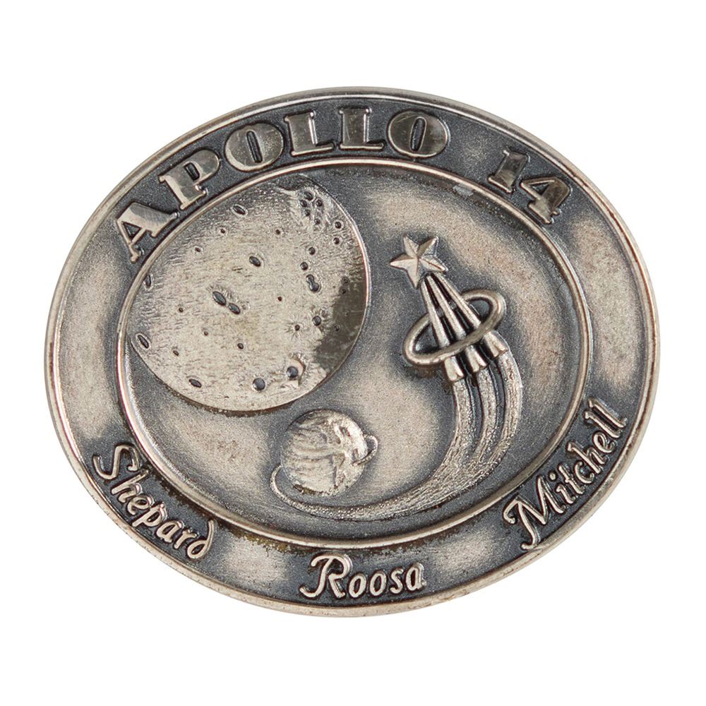 Dave Scott's flown sterling silver Apollo 14 Robbins medallion, measuring approximately 1.5Ë x 1Ë, with a raised design of the Apollo 14 mission insignia on the face—the astronaut insignia approaching the moon, leaving a comet trail from the liftoff point on Earth, with the mission and crewmen's surnames in the border. The reverse is engraved with the launch date of January 31, 1971; lunar landing date of February 5, 1971; and return date of February 9, 1971. The medal is serial numbered "230" on the edge, and stamped with the Robbins "Sterling" hallmark. Condition is mint state. Accompanied by the original case and a detailed letter of provenance signed by Scott, in part: "The Apollo 14 silver medallion number '230' included with this letter is from my personal collection and was flown aboard Apollo 14, January 31–February 9, 1971…Prior to the mission, 303 medallions were struck by Robbins and all were flown on the mission…After the mission, the Astronaut Office distributed the medallions accordingly. I specifically requested the Apollo 14 number '230' included with this letter." Scott requested number 230 to have a consistent collection, and the number represented a Mercedes 230SL for which he had aspirations.