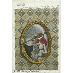 <B>Dave Sim - Cerebus #73 Cover Original Art (Aardvark-Vanaheim, 1985).</B></I> Family discord is eerily symbolized by this shocking image of a framed family portrait of Cerebus, Red Sophia, and Mrs. Henrot-Gutch, with a wicked swath cut right through it. Dave Sim has signed and inscribed the page in its upper border, "To Kevin -- best wishes to you and the Turtles" (wonder who that refers to?) The image area of this page is 10" x 15", and the art is in Excellent condition. <I>From the collection of Richard and Wendy Pini</B></I>.