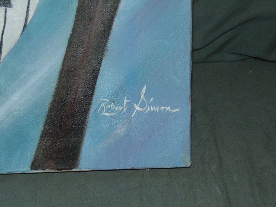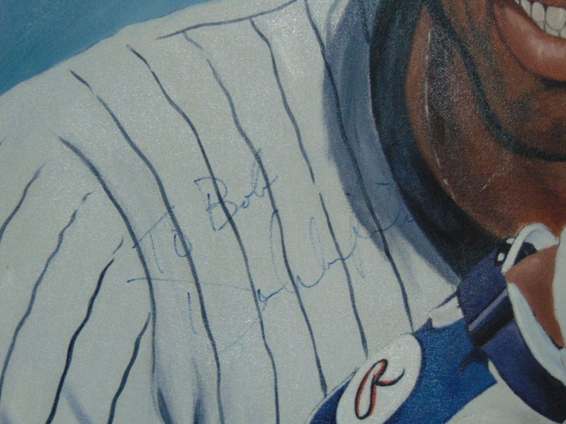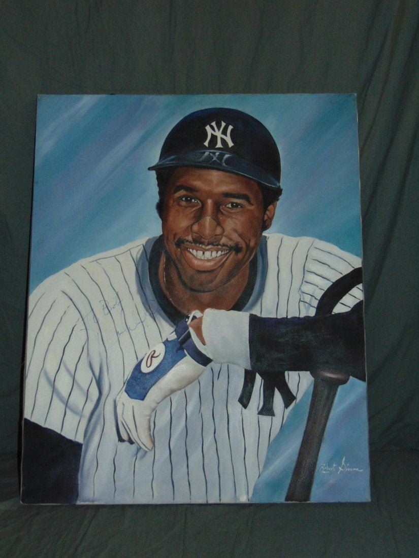Oil on canvas painting of Dave  Winfield (New York Yankees) by Robert Simon.  Approx. 24" x 30". Painting is signed and  inscribed "To Bob, Dave Winfield". Also signed  lower right by the artist.