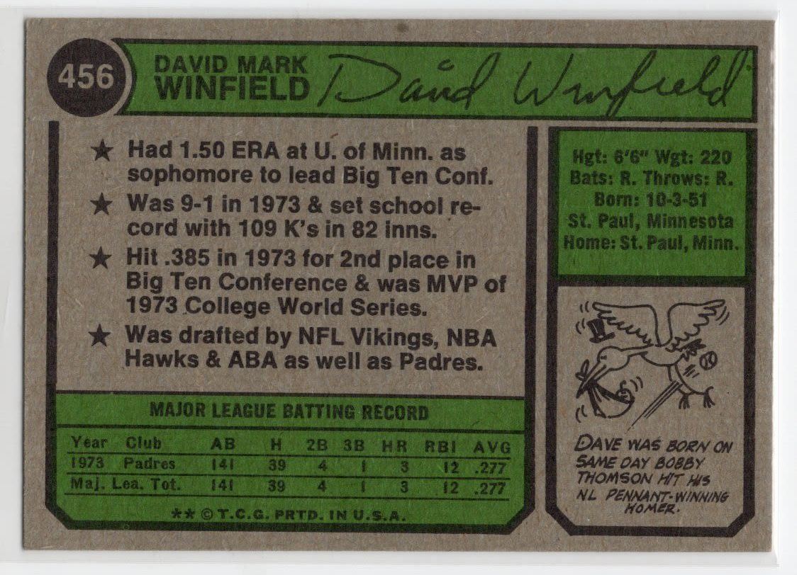 Dave Winfield ROOKIE Card 1974 Topps Card number 456