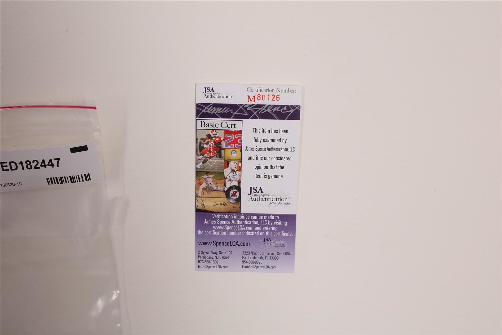 Regarding Memorabilia Items – All autographs come with a Third-Party Certificate of Authenticity from either PSA/DNA, Global Authentication, Bang the Gavel Auction Services, Spence Authentication, UDA, Online Authentics or another reputable memorabilia authenticator. Seized Assets Auctioneers is not responsible for the opinions of any of the third-party authenticators. Please email us at questions@seizedassetsauctioneers.com with any specific questions.
