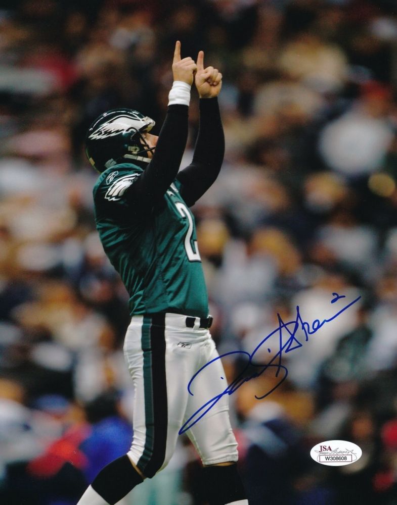 8" x 10" Photo. Hand-signed in blue felt tip pen by David Akers (Lions). The autograph includes an official James Spence Authentication (JSA) hologram for authenticity purposes.