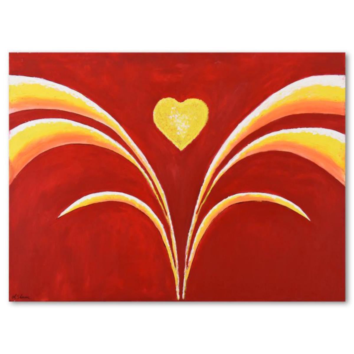 "Blooming Hearth" is an original acrylic painting on stretched canvas, hand signed by David Ashouri. Includes Letter of Authenticity. Measures approx. 40" x 30" (image). There is minor wear on the corners that may be concealed when framed. Reference #: 250485