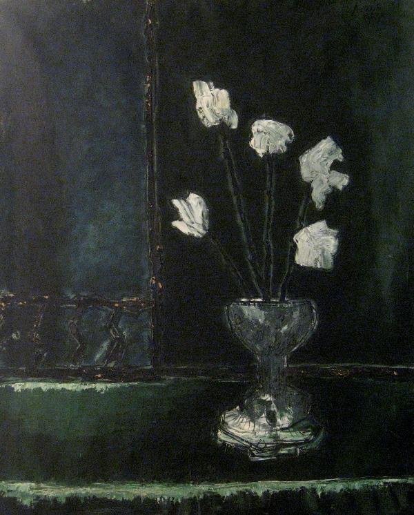 David Azuz, Israeli Art, B. 1942, Flowers, 1959, Oil on canvas, 100x80cm, Signed, dated and titled on the reverse., , , , .,
