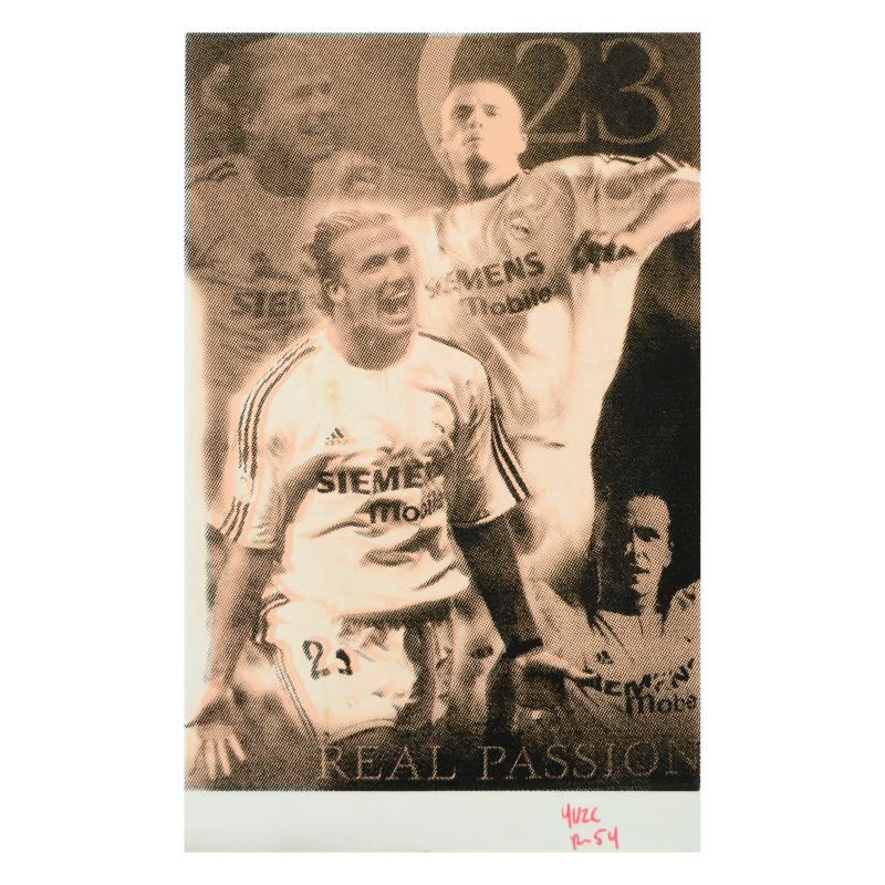 "David Beckham" is a one-of-a-kind hand-pulled silkscreen on canvas by Ringo (Daniel Funes) - protege of Andy Warhol's apprentice, Steve Kaufman. This piece is hand signed by the artist and Includes Certificate of Authenticity. This piece comes from the A