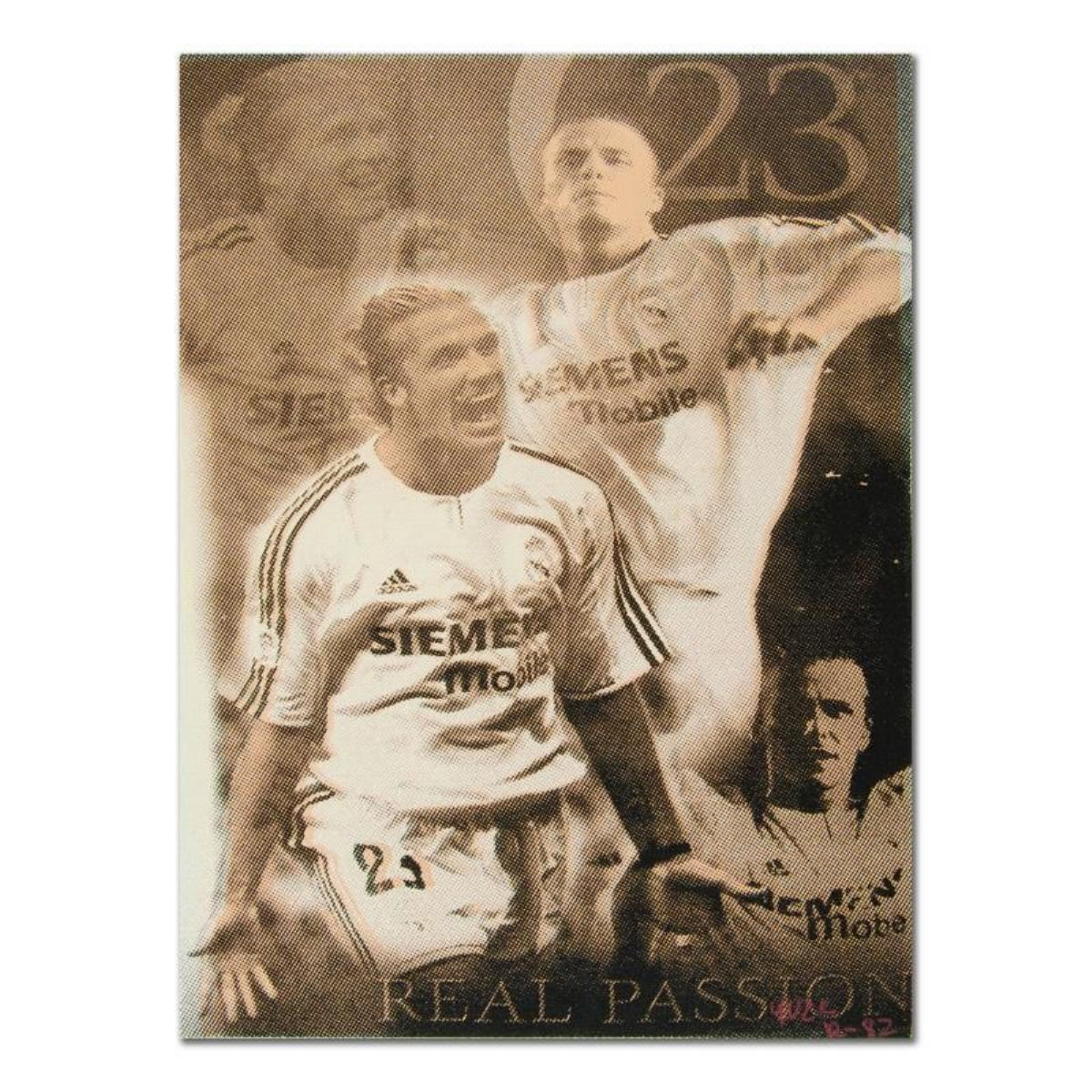 David Beckham by "Ringo" Daniel Funes. "David Beckham" is a one-of-a-kind hand-pulled silkscreen and mixed media painting on canvas by Ringo. This piece is hand signed by the artist and comes from the Andy Warhol Legacy Series. Includes Certificate of Authenticity. Due to the nature of the canvas, these pieces will need to be mounted for framing. Measures approx. 12" x 16" (image).