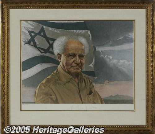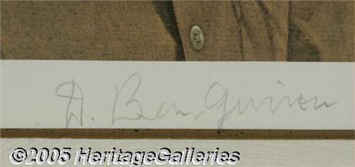<B>David Ben-Gurion Signed Limited Edition Lithograph</B></I> Signed in July of 1973, this fabulous lithograph from Living Legends is number 23 of 500. The pencil signature of Israeli Premier Ben-Gurion is large and bold. Beautifully matted and framed to 28" x 24" with an engraved plate which reads "David Ben-Gurion / Sde-Boker, Israel 1973". Sde-Boker is an Israeli Kibbutz in the Negev, in the Southern District of Israel, founded on May 15, 1952. From 1963 it was his home until his passing in 1973. <I>Accompanied by COA from PSA/DNA.</B></I>