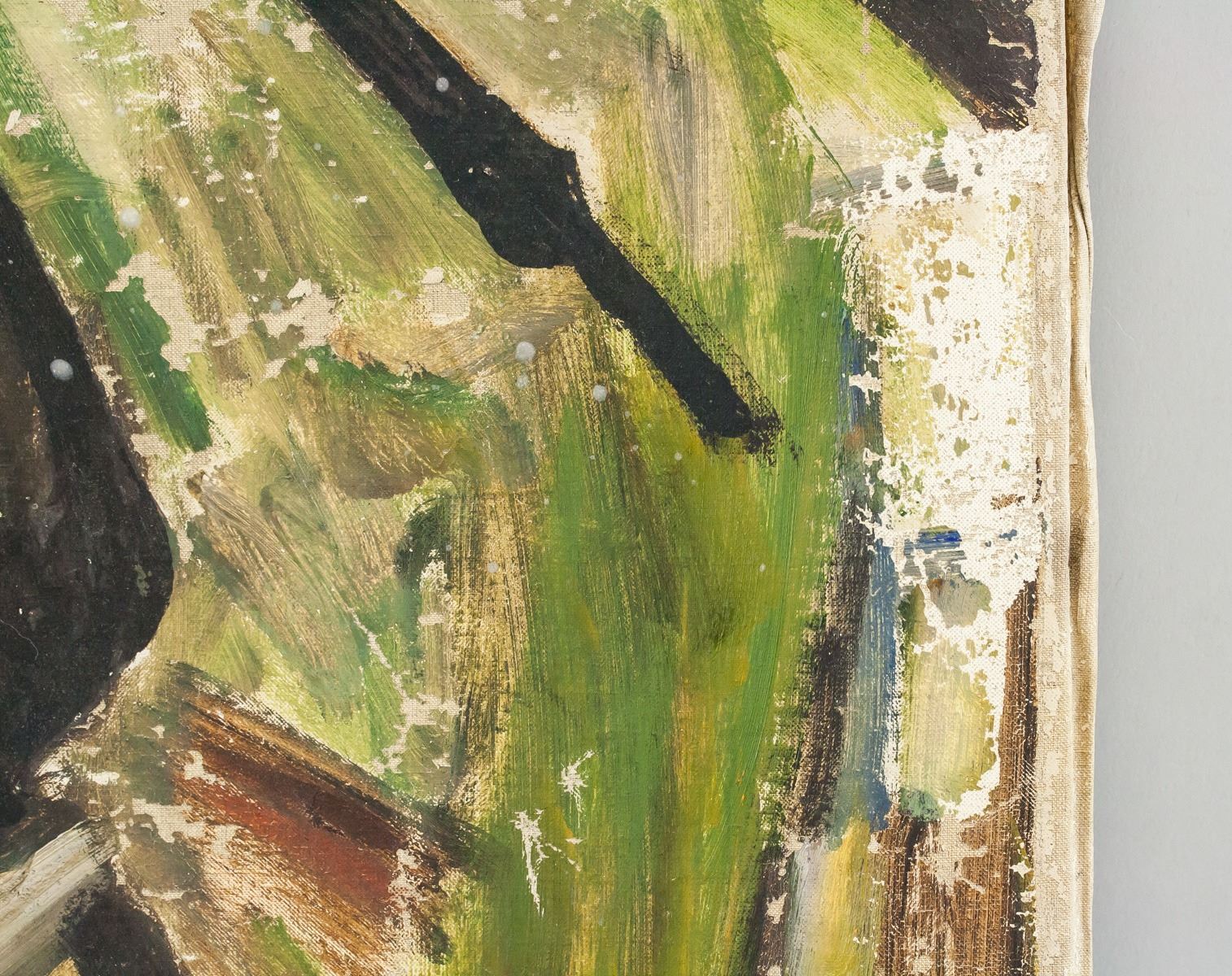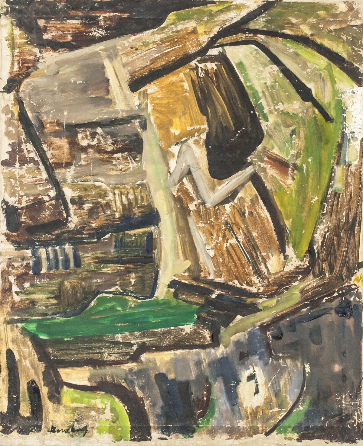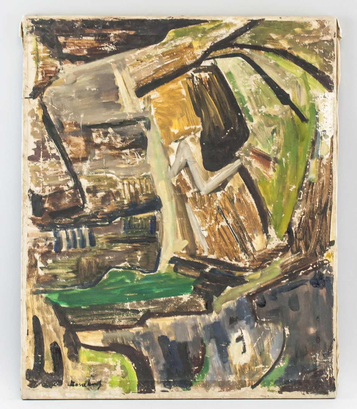 Oil on canvas. Featuring an abstract expressionist composition. Signed Bomberg on the lower left corner. Label affixed to stretcher bar on verso inscribed PA39. Attributed to David Bomberg (1890-1957, British). 73 x 61 cm (29 x 24 inches). Provenance: This lot carries limited provenance from a Greek estate