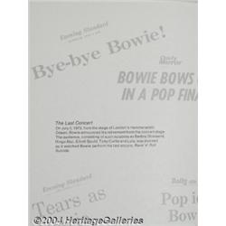 <B>David Bowie - "Diamond Dogs" Tour Program (1974).</B></I> It's "The Year of the Diamond Dog" with this first edition item. This features the blocked-out "privates" area. Condition: Mint-. <BR><BR><B>Important notice:</B> Heritage usually auctions material at the rate of 200-250 lots per hour. On some occasions eBay Live bid software or the Internet may not be able to keep up with the pace of the auction. We recommend placing a realistic absentee bid now as insurance to avoid disappointment. Occasionally the auctioneer may eliminate or reject an eBay Live bid, and the auctioneer may also reopen a lot after the close of the eBay live bidding (usually because we missed an audience bid), and may reject your bid even if it shows you as the winning bidder. By bidding via eBay Live, you agree that Heritage may award the lot to another bidder at its sole discretion under the circumstances described above or any other reasonable circumstances. Since eBay bids are not shown to us until we open the lot on the floor, we treat those bids just like floor bids. In most cases the floor responds before the eBay bid is presented to us, due to Internet lag time, so for consistency we have made it a policy that floor bids are always considered first over tie eBay live bids. Also please note that all Heritage lots purchased through eBay Live carry a 24.5% Buyer's Premium. Please make sure you read the Terms and Conditions before you bid.