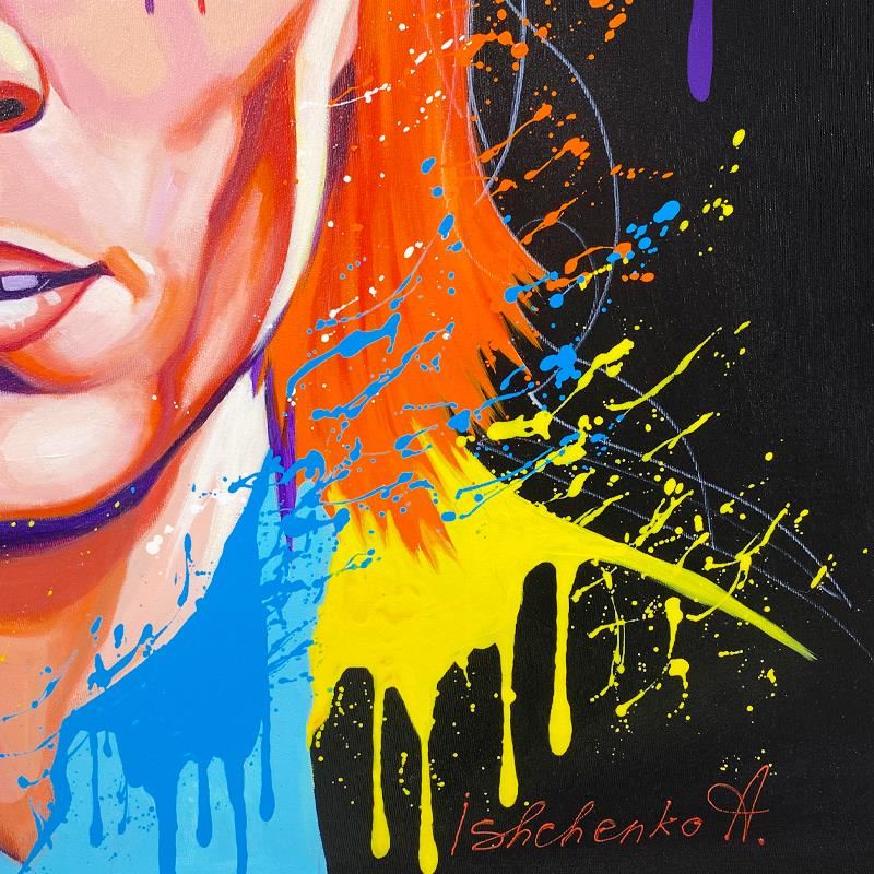 "David Bowie" is an original acrylic painting on canvas by Alexander Ischenko, hand signed by the artist. Includes Letter of Authenticity. Measures approx. 36" x 36" (image).