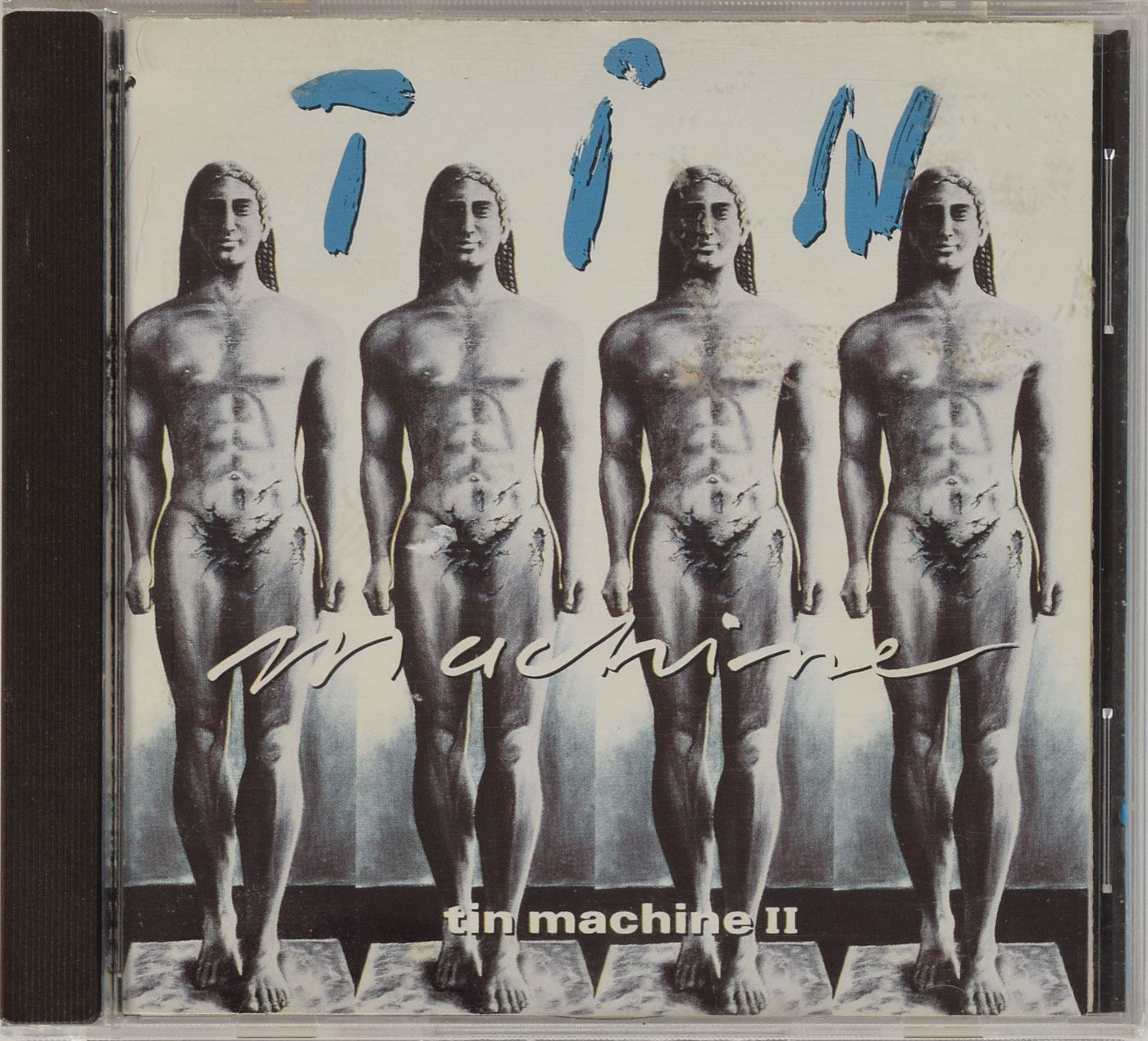 Tin Machine II CD signed on the inside of the CD booklet below his image in blue felt tip, "Bowie." Also signed in black felt tip by drummer Hunt Sales. In fine condition. The CD is included.