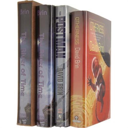 <B>David Brin Signed First Editions.</B></I> Includes the following:<BR><B><I>The Postman.</B></I></B></I> (New York: Bantam Books, 1985), first edition, 294 pages, light blue boards, 8vo, dust jacket. Condition (book/ dj): fine/ fine.<BR><B><I>The River of Time.</B></I></B></I> (Niles, IL: Dark Harvest, 1986), first edition, 366 pages, brown boards, 8vo, dust jacket. Condition (book/ dj): fine/ fine.<BR><B><I>The River of Time.</B></I></B></I> (Niles, IL: Dark Harvest, 1986), first edition, 366 pages, brown boards, 8vo, dust jacket with slipcase. Condition (book/ dj): fine/ fine.<BR><B><I>Otherness.</B></I></B></I> (London: Orbit, 1994), first edition, 387 pages, red boards, 8vo, dust jacket. Condition (book/ dj): fine/ fine.<BR><BR><BR><b>Shipping:</b> Books & Catalogs (<a target="_blank" href="http://www.heritageauctions.com/common/shipping.php">view shipping information</a>)