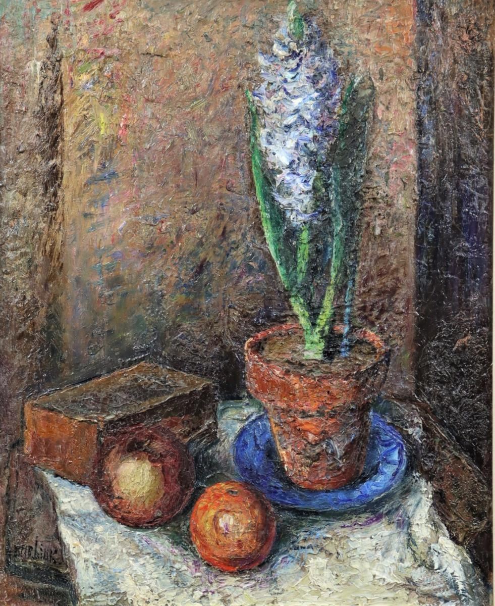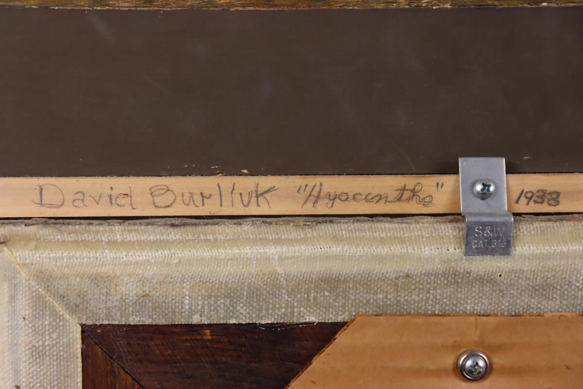 Titled "Hyacinths'" 1938. This piece was purchased at Cristie's East in 1985 and then framed by Diego Salazar. Painting has been relined.