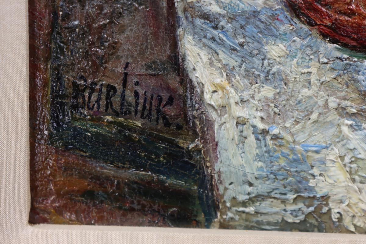 David Burliuk was a central figure in the history of the Russian avant-garde movement as an accomplished poet, art critic, and exhibition organizer. He is considered one of the world's first hippies, and is known to have painted the words 'I Burliuk' on his forehead, standing on street corners reciting poetry. His early works were fauve-like, violent in color and heavy with paint. Burliuk often used very thick impasto paint; in some cases, on his larger works, if one stands to the side of the painting, it almost looks like a relief. Occasionally he would use a palette knife but most of the time, favored the brush, probably medium and large sizes and applied with zest and boldness. There is always certain spontaneous fluidity in his oeuvre. Throughout his life, Burliuk was innovative, energetic and upbeat.