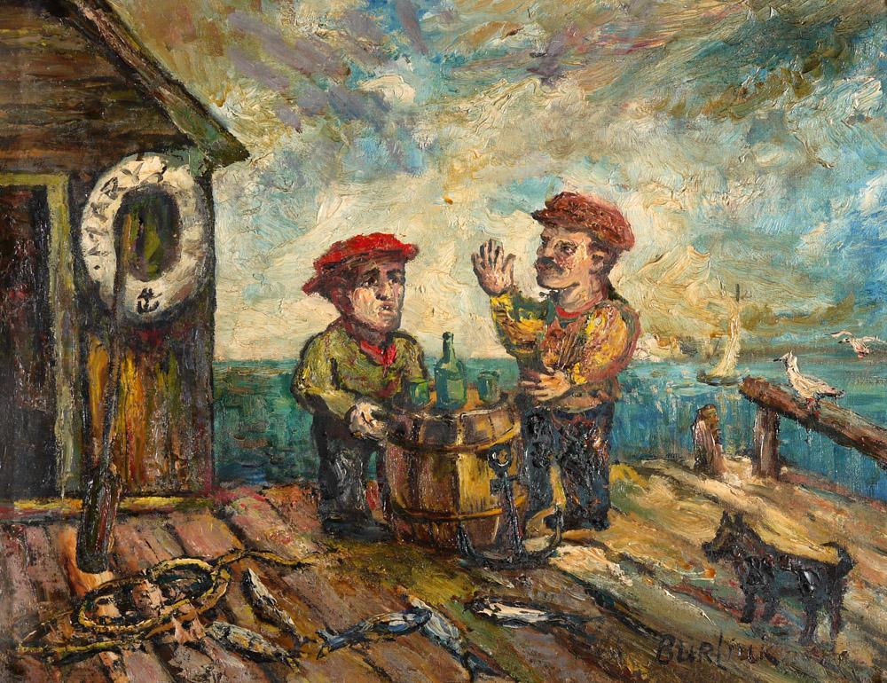 David Burliuk, Russian Art, 1882 - 1967, Fishermen's Tales, Oil on canvas, 38x48.5cm, Signed., , , Knoke Fine Arts, Marietta, GA, USA, ,